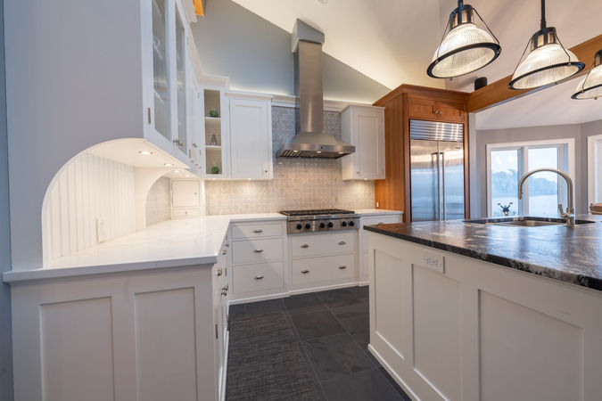 Full kitchen renovation incluing cutom cabinetry in this lakeside gem on Cazenovia Lake.